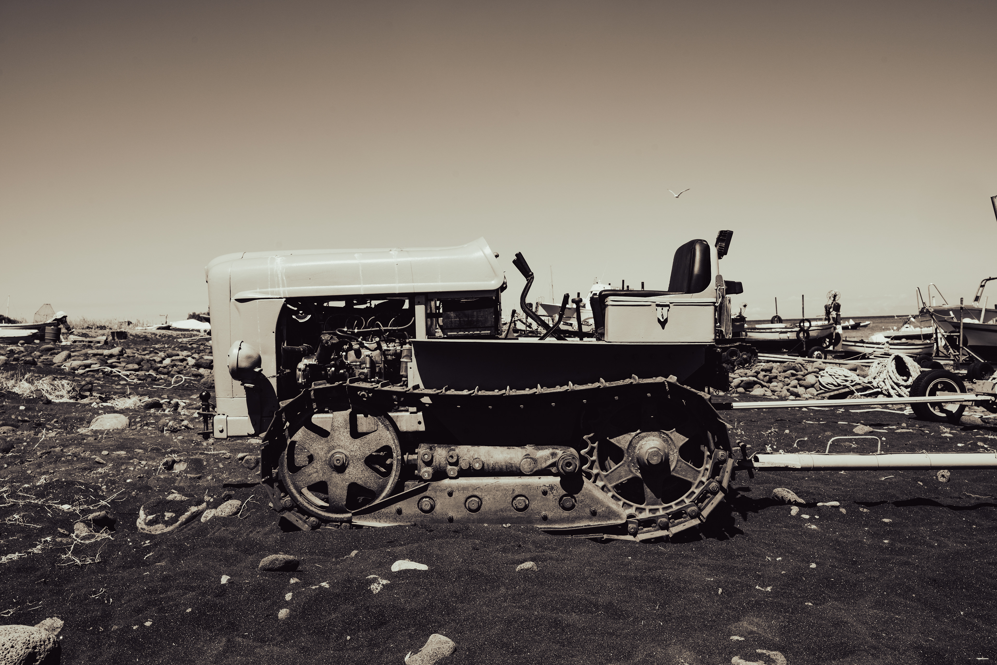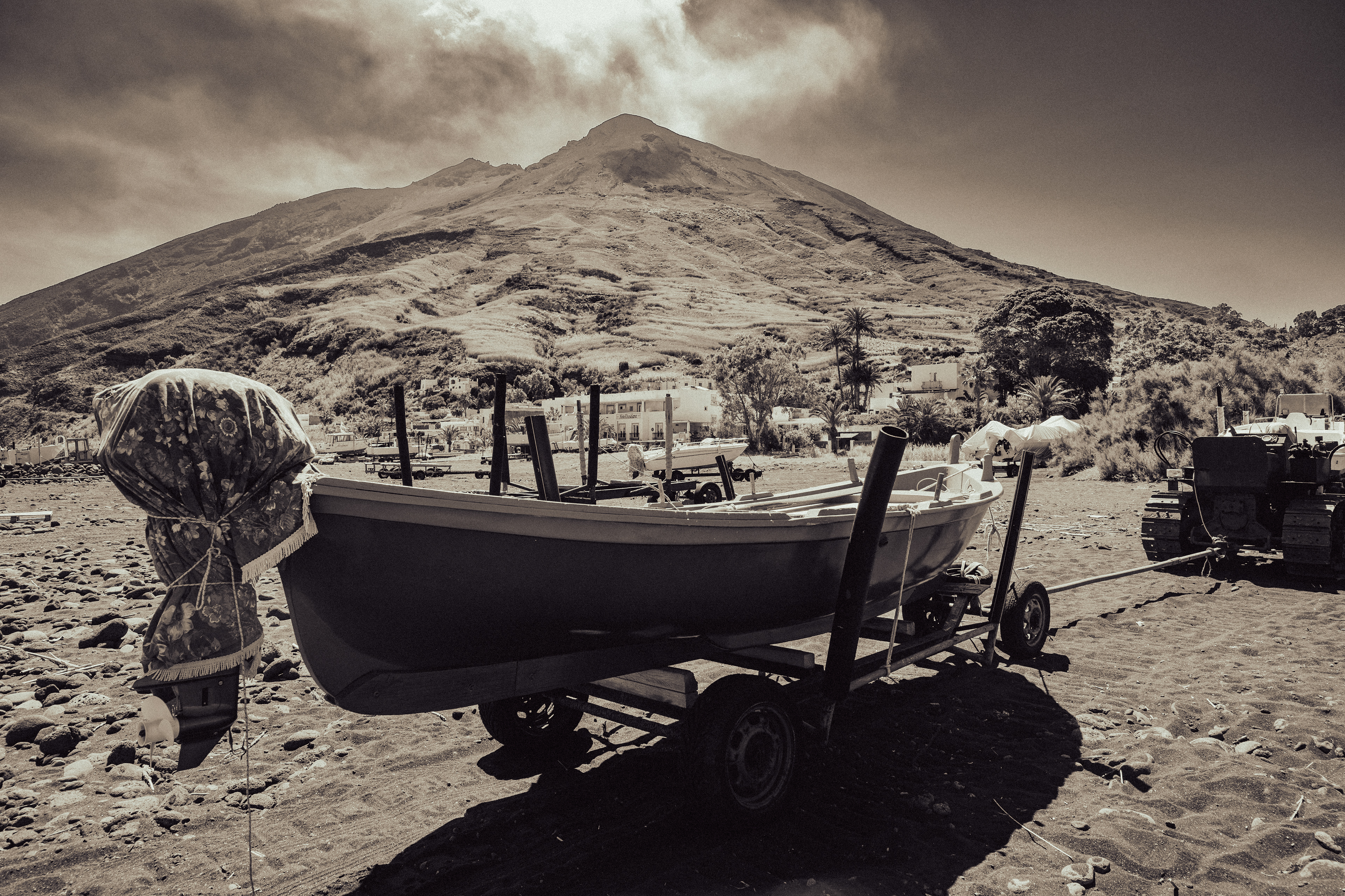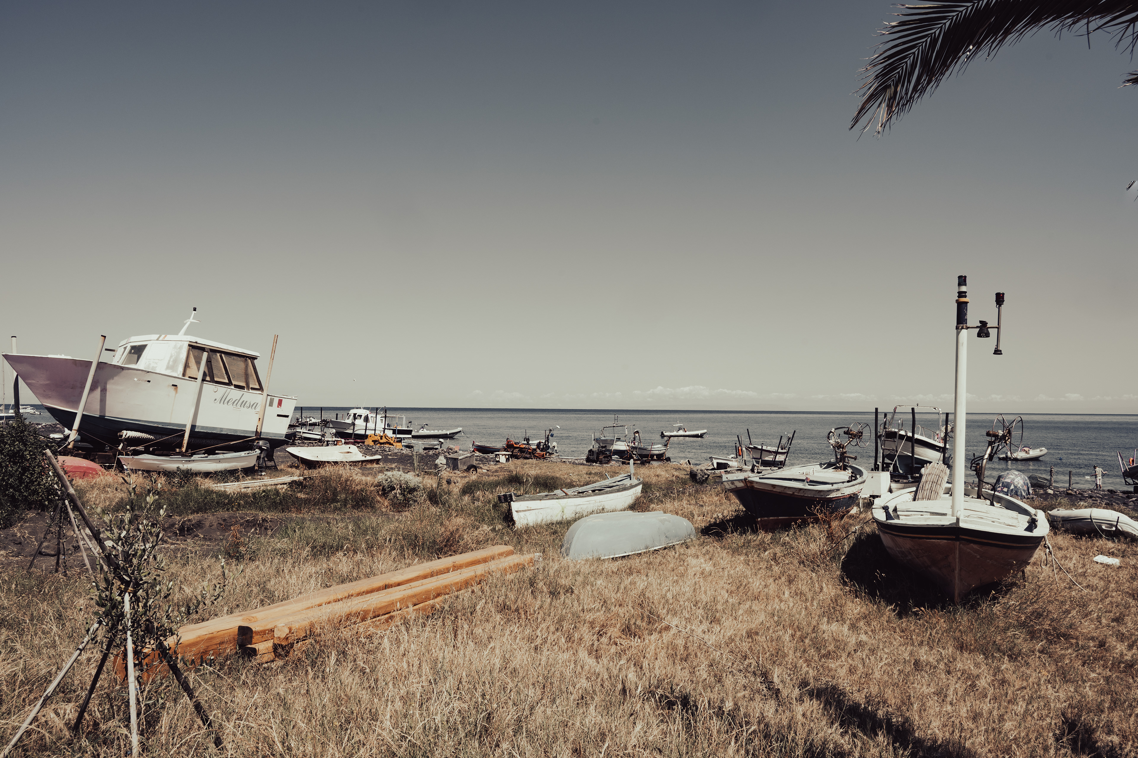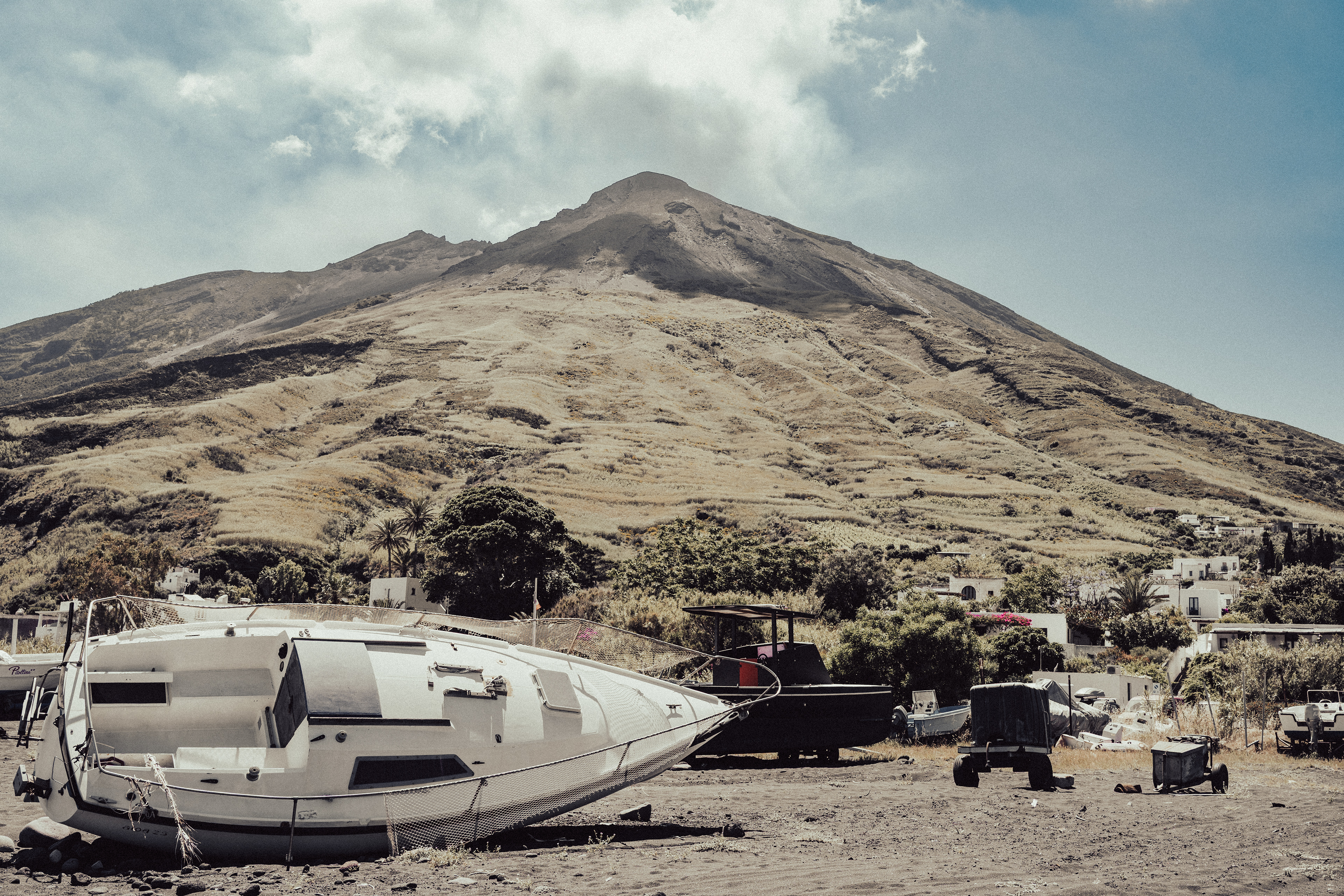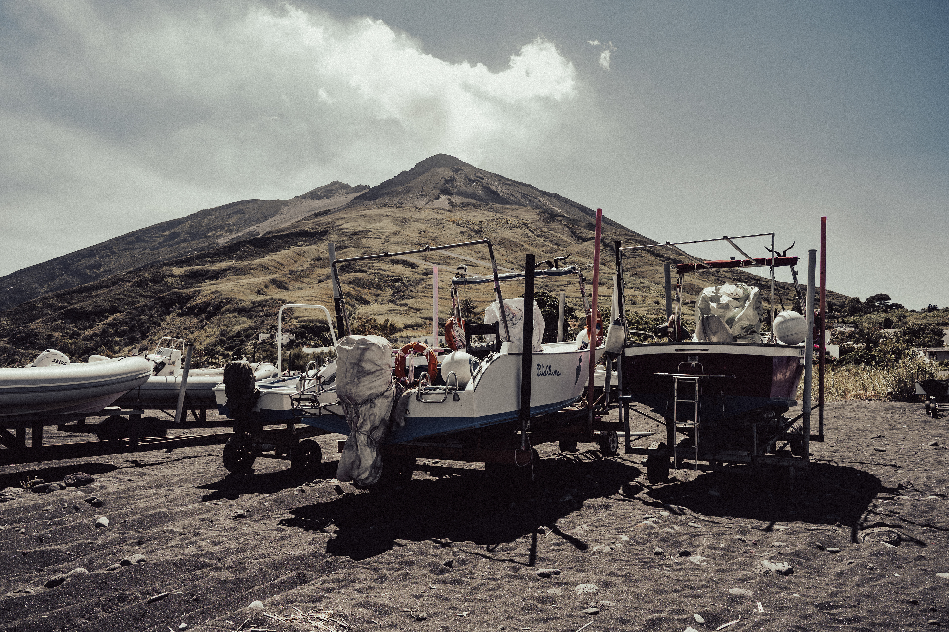 On the island of Stromboli, there is a slightly out-of-the-way place where the boats end their journey. It's not an official cemetery, but rather a storage area, an improvised dumping ground. There are worn-out boats, sometimes abandoned, sometimes put aside to wait to be repaired. I chose to photograph this place because it shows another side of the island. Far from the images of volcanoes and beaches, this accumulation of damaged hulls tells of the daily life of the inhabitants, their permanent link with the sea, and also the difficulty of maintaining boats in such a harsh environment. Through my series, I wanted to capture this atmosphere. For me, these carcasses of boats are not just rubbish, but traces of a local history, fragments of an ancient and vital relationship between the inhabitants and the sea. They remind me that even the most solid objects, made to face the waves, eventually erode and return to the landscape. A cycle that resonates strangely with that of the volcano, always active, always destroying and recreating. I wanted to document this place, which is often invisible to the visitor, but which is an integral part of the island's reality.